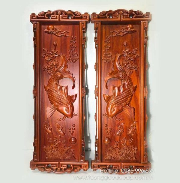 Hãy là người đầu tiên nhận xét “Tranh cá chép Lý Ngư Vọng Nguyệt gỗ hương 110x40cm”